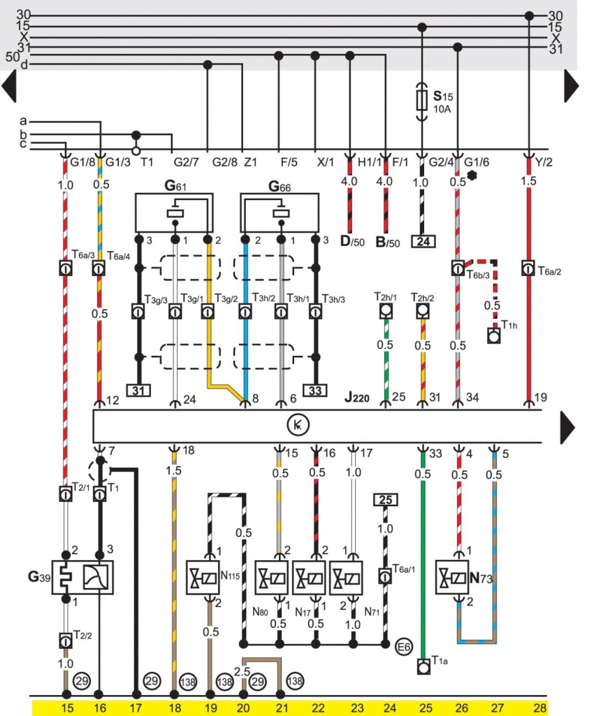Блок управления, датчик положения дроссельной заслонки, топливные форсунки и выключатель положения дроссельной заслонки. Блок управлениялямбда-датчик, система зажигания и топливная система. Двигатель ADZ. Блок управления системой впрыска Simos, система зажигания, датчик скорости и датчик детонации.